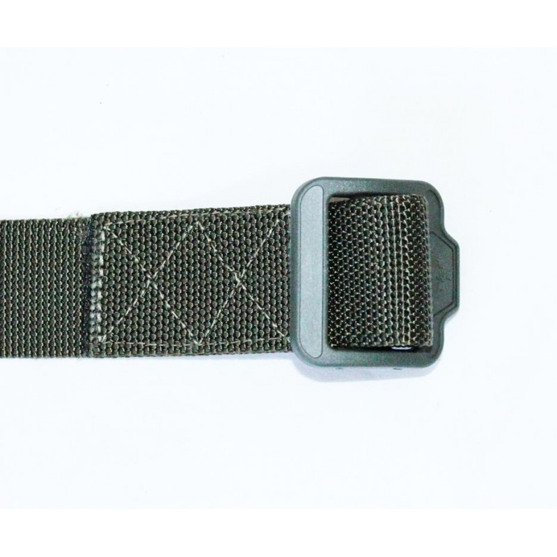 Olive plastic buckle. On the expanded part is the emblem of the Armed Forces of Ukraine. The belt of the trouser belt is made of high strength nylon. At the base of the buckle, this belt has reinforced firmware. The end of the belt tape is tapered for easier threading into the buckle.
